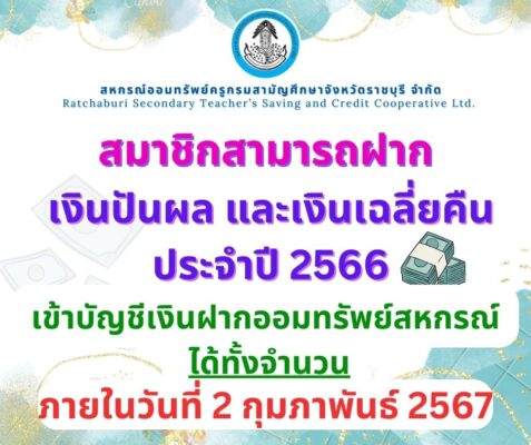 สมาชิกสามารถฝาก เงินปันผลและเงินเฉลี่ยคื Published 24 มกราคม 2024 at 940 × 788 in สมาชิกสามารถฝาก เงินปันผลและเงินเฉลี่ยคื ← Previous Next →